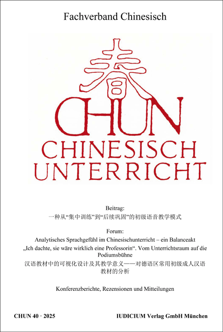 Die jährlich erscheinende Fachzeitschrift „CHUN — Chinesisch-Unterricht“ ist das einzige Fachorgan zu Chinesisch als Fremdsprache in Europa. Es wird allen Mitgliedern im Fachverband Chinesisch kostenlos zugesandt und wird von den meisten ostasienwissenschaftlichen Institutionen im deutschsprachigen Raum bezogen. Der wissenschaftliche Beitrag in diesem Band („Beitrag/论文“) wurde vor der Veröffentlichung durch ein Double-Blind-Peer-Review-Verfahren geprüft.